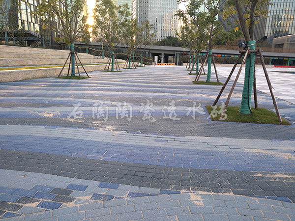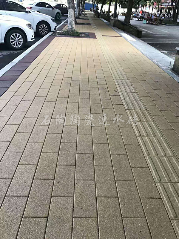 >石陶陶瓷透水砖采用陶瓷废料为主原料,经过二次布料成型,高温烧成,是具有保持地面透水性、保温性、抗压、吸音、降噪、防滑、耐风化、抗寒可重复使用等优点的绿色环保产品。